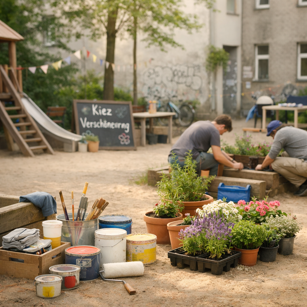 Im Bezirk Charlottenburg-Wilmersdorf kannst du Sachmittel beantragen, um den öffentlichen Raum in deinem Kiez zu verbessern. Beispiele sind Material für Renovierungen, Pflanzungen oder Ausstattung für öffentlich zugängliche Einrichtungen.