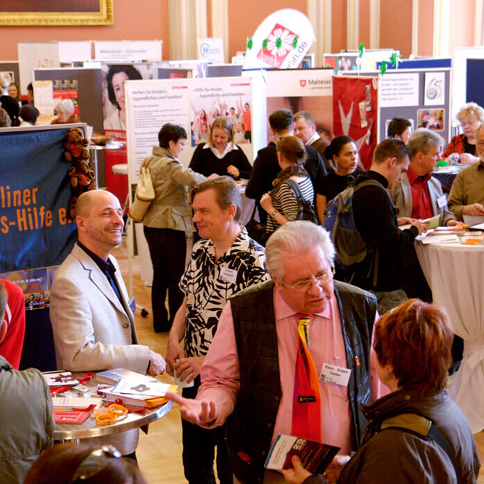 Kuruluşlar Berlin Gönüllü Borsası'nda çalışmalarını sunarlar. İlgilenen kişiler Berlin'deki sivil katılım fırsatları hakkında bilgi edinebilirler.